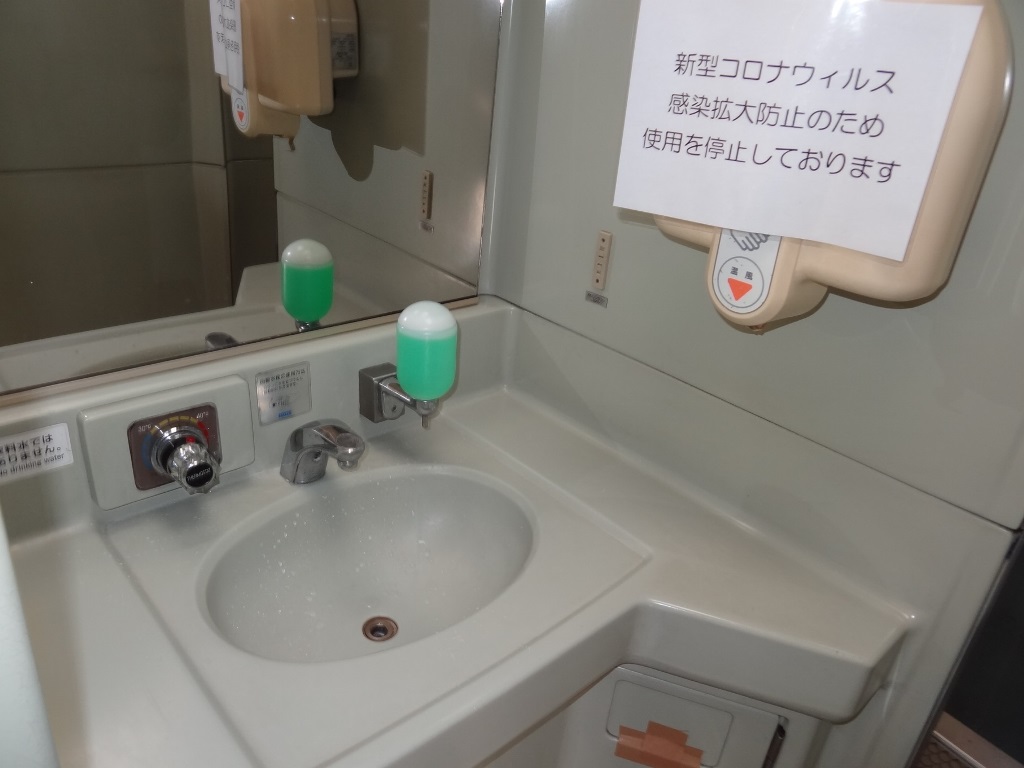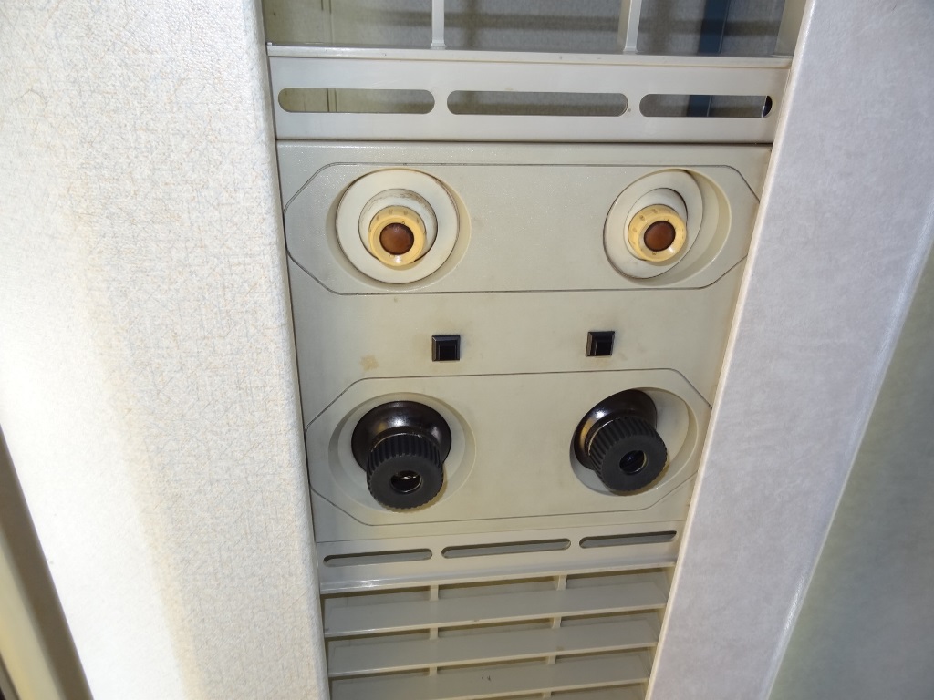 AC100ボルト電源口と温風式のエアータオル(使用停止中)も装備されています。