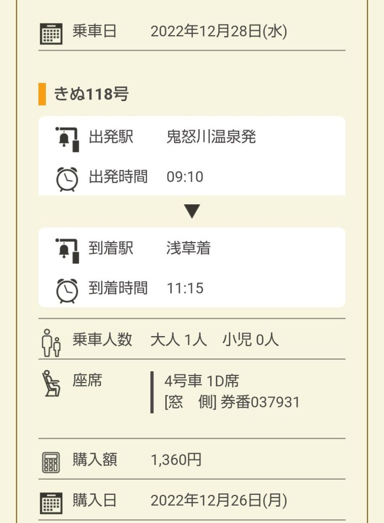 1枚750円で購入したので、鬼怒川温泉→浅草IC1,571円が821円もお得になりました。