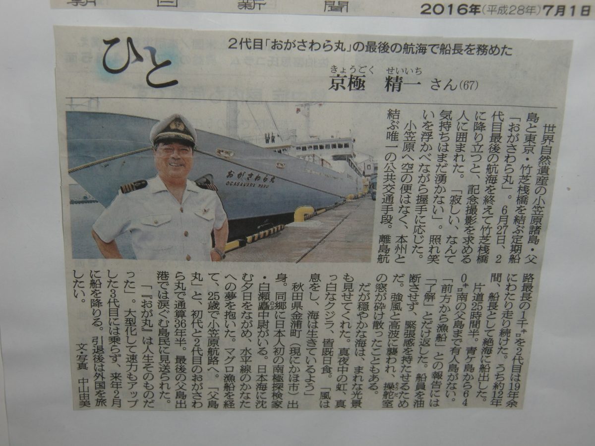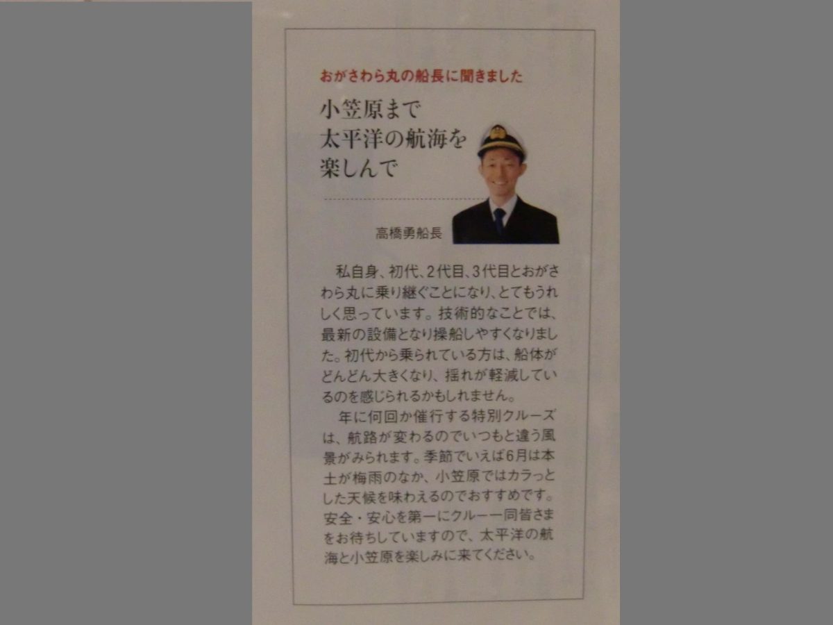引退した京極船長から2代目おがさわら丸船長を引き継いだ高橋船長が3代目おがさわら丸船長に就任。