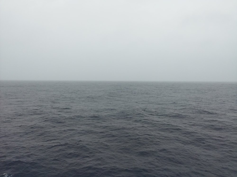 晴れていればボニンブルーに染まる海が一望なんですが、あいにくの天気では海は灰色です。
