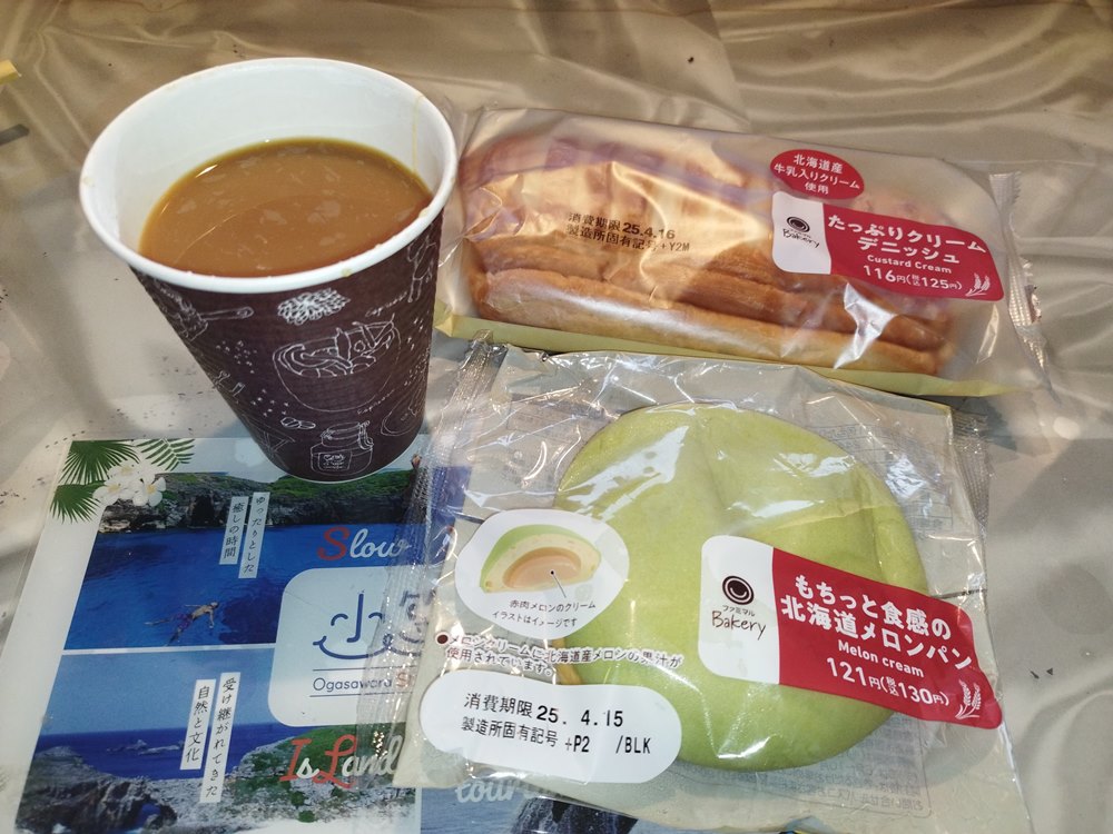 パンは、竹芝桟橋近くのファミリーマート南山堂竹芝駅前店で仕入れておきました。