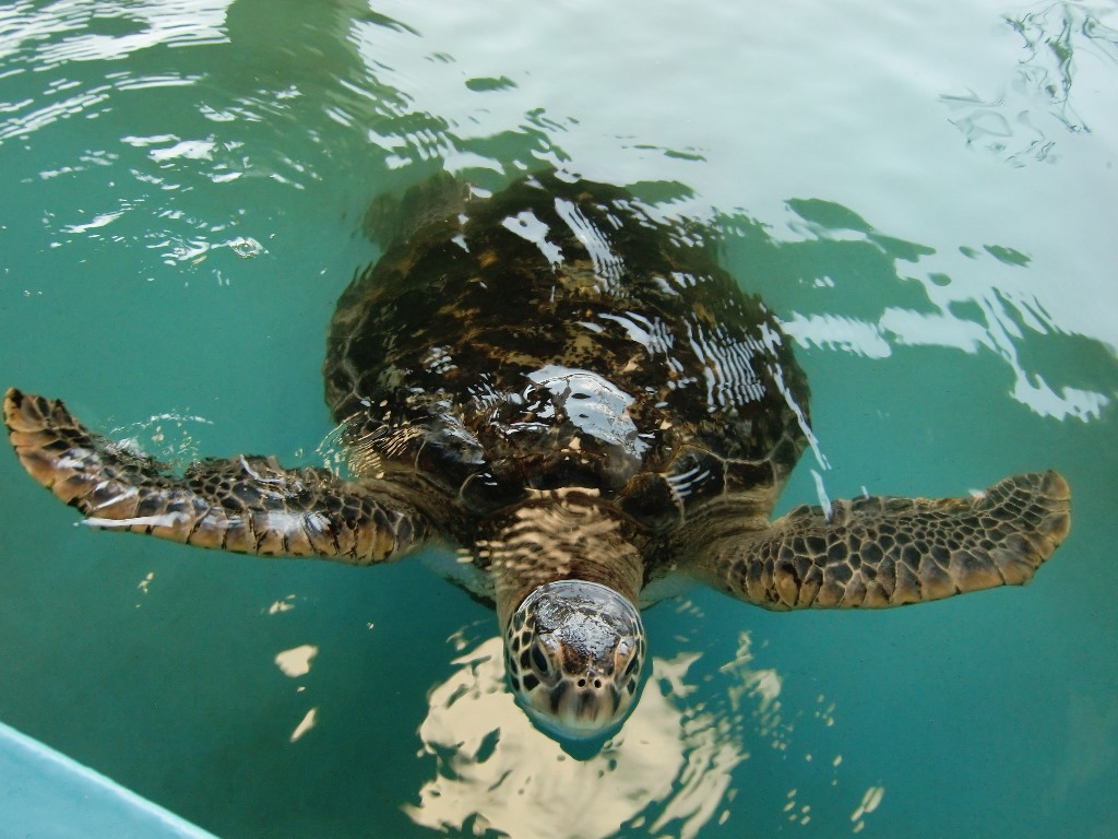 なっちゃんは海洋センターの人工孵化場で孵化した父島出身です。