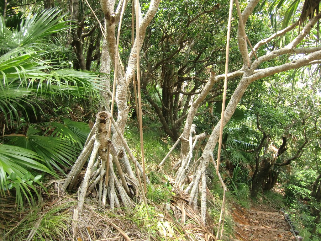 海岸の岩場や砂地などに生える植物で、このように山中に生えるのは小笠原諸島だけだそう。