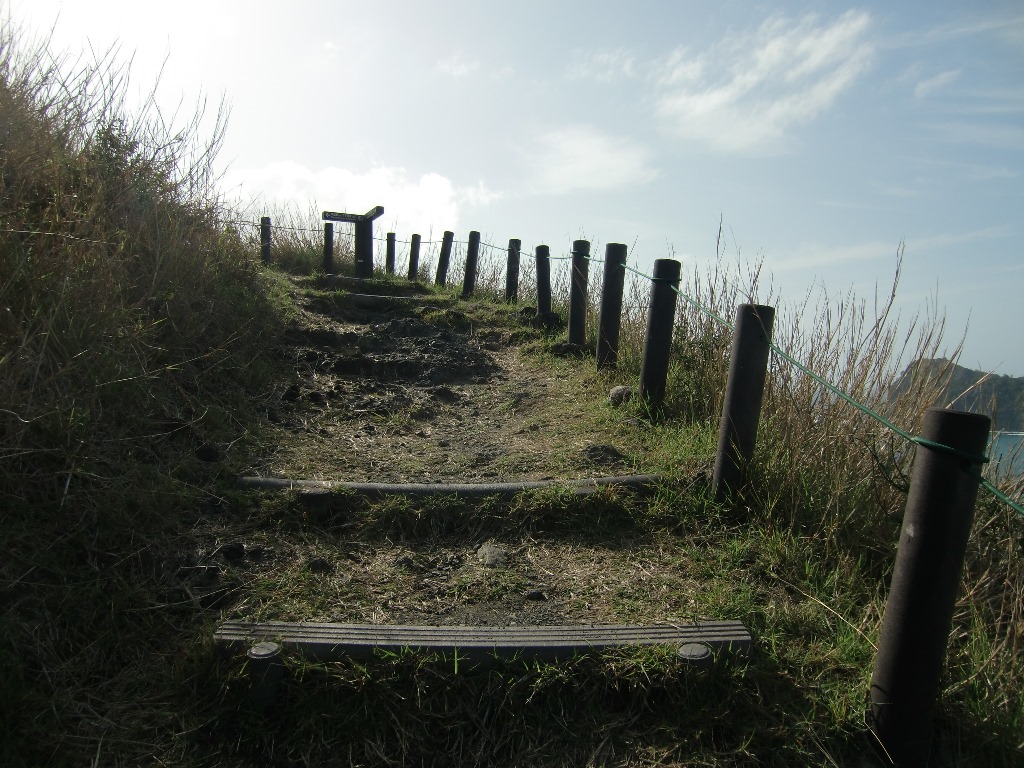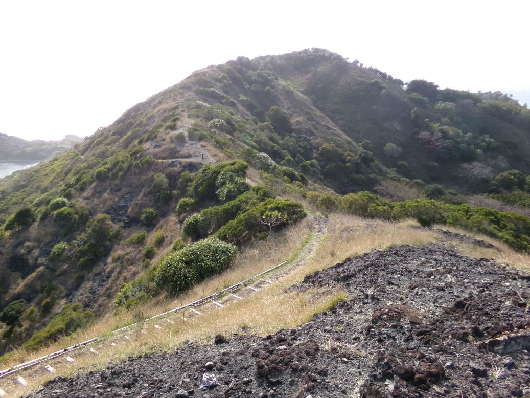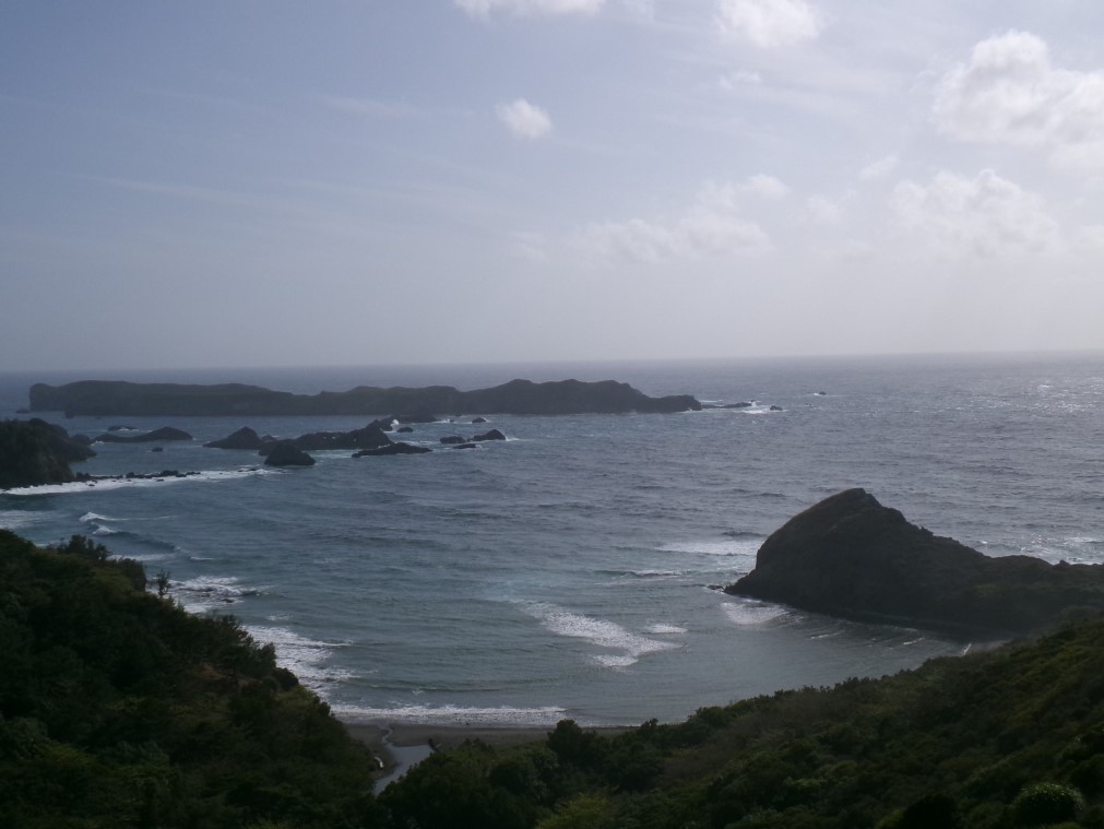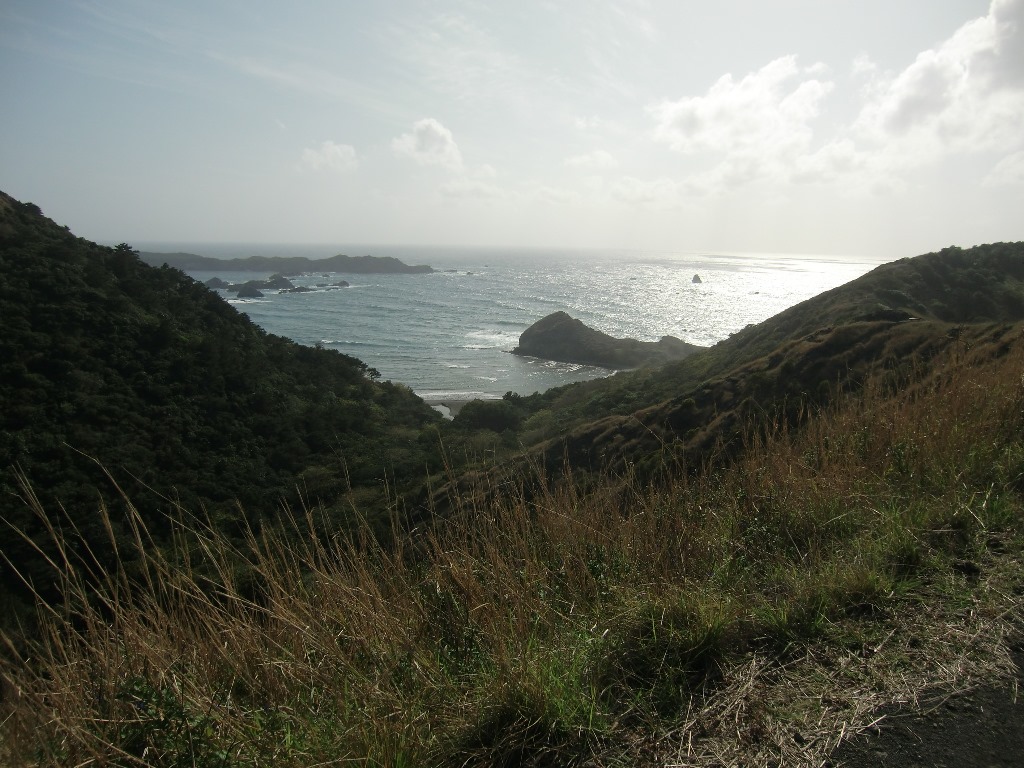 稜線に立つと、これまで見えなかった南側の海が見えました。