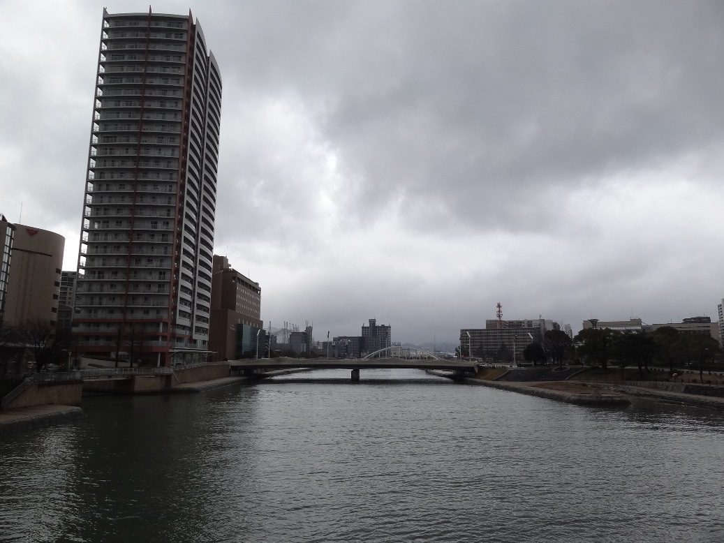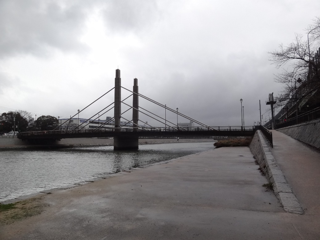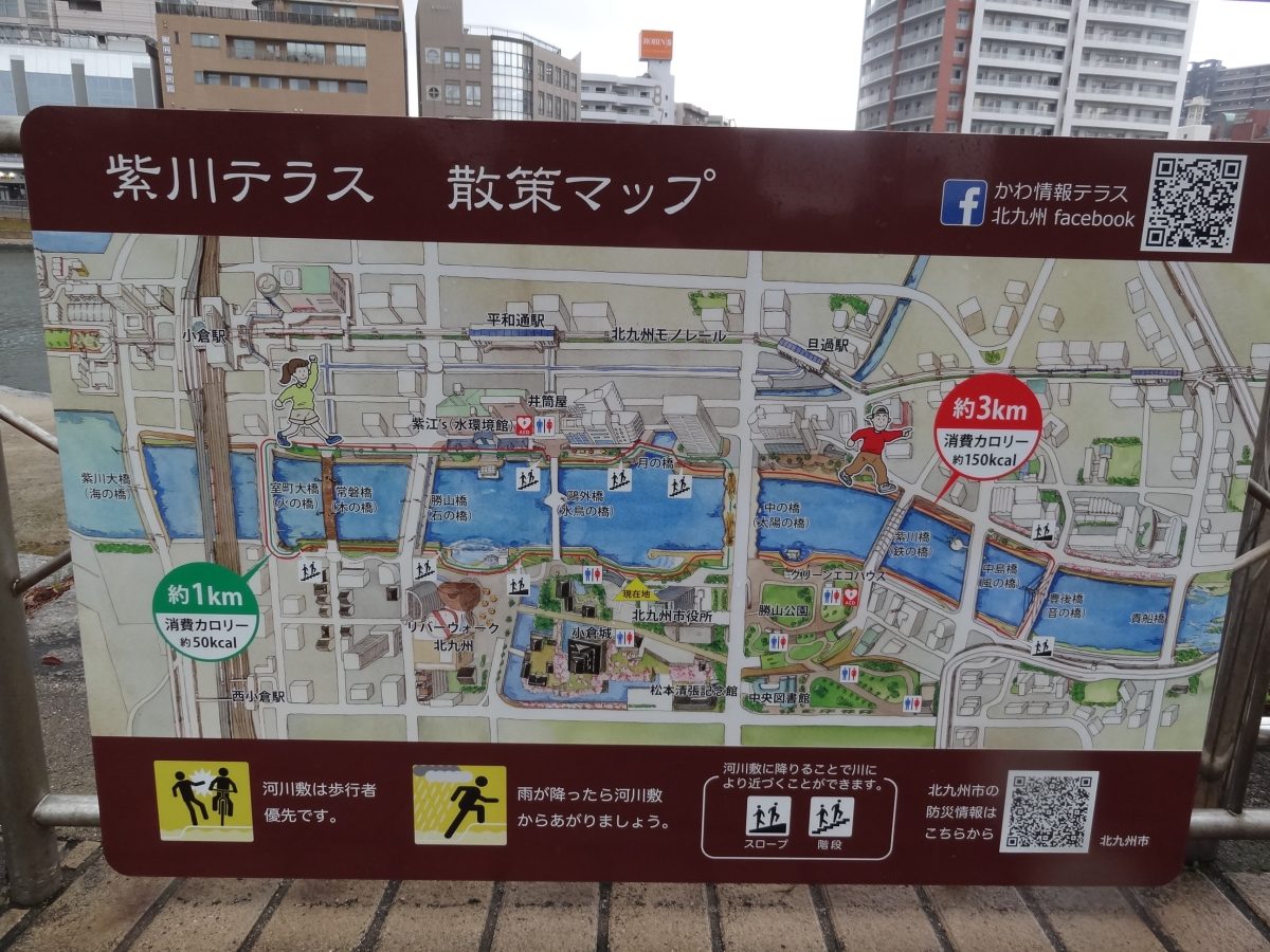 北九州市の福智山(標高900m)の山腹に源流を発し、小倉南区から小倉北区を北上し響灘へ注ぐ延長22.4kmの二級河川、紫川を渡ります。