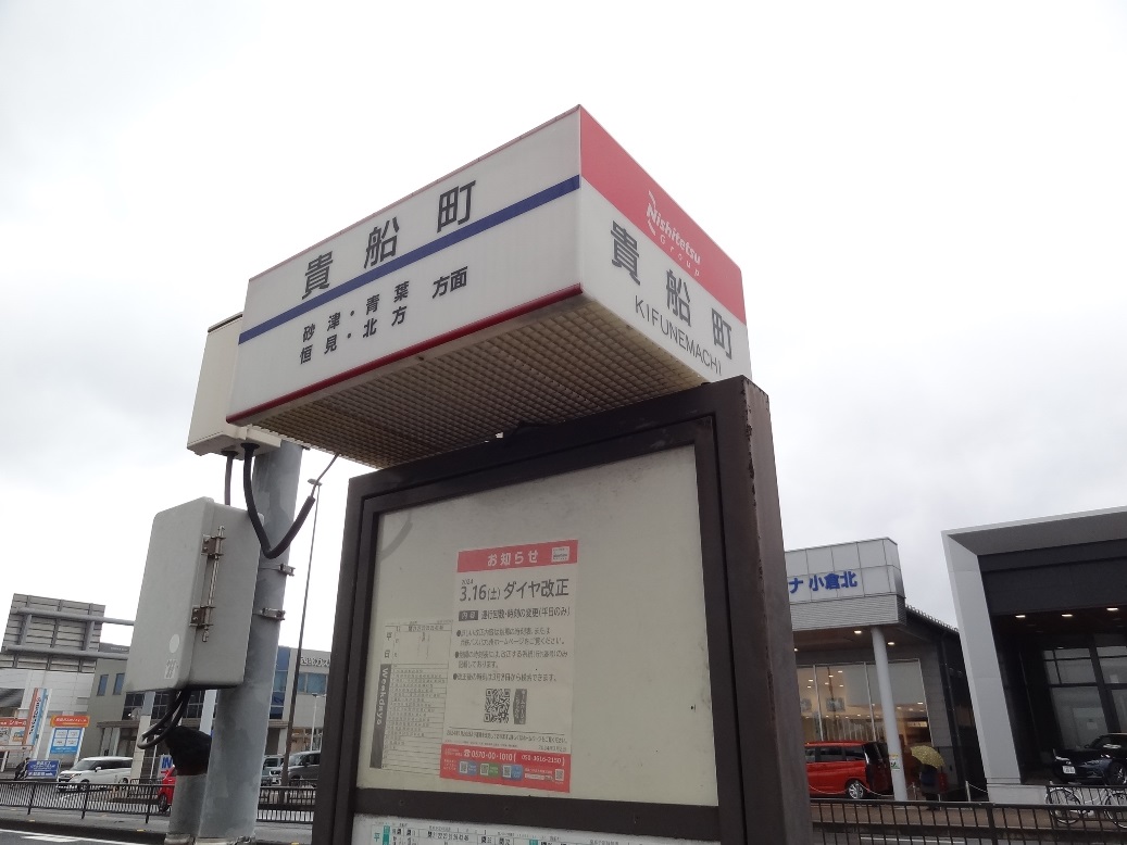 見学を終え、ミュージアムの前にある貴船町バス停にやってきました。